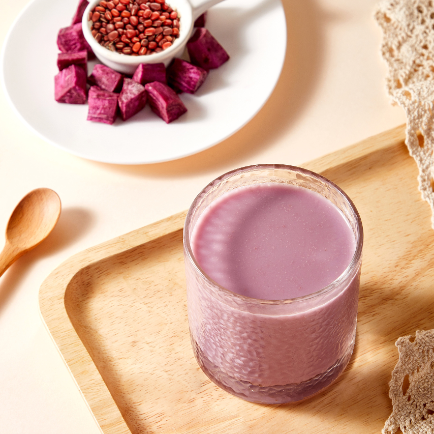將紅豆洗淨,紫薯去皮、切塊; 2.將所有食材放於機器內,水箱加入1000mL純淨水,選擇“倍濃”功能、1000mL容量,按“啟動”開始。